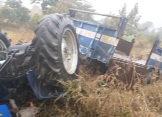 बिछुआकला : अंधे मोड़ पर पलटा तेज रफ्तार ट्रैक्टर ,चालक दबा...